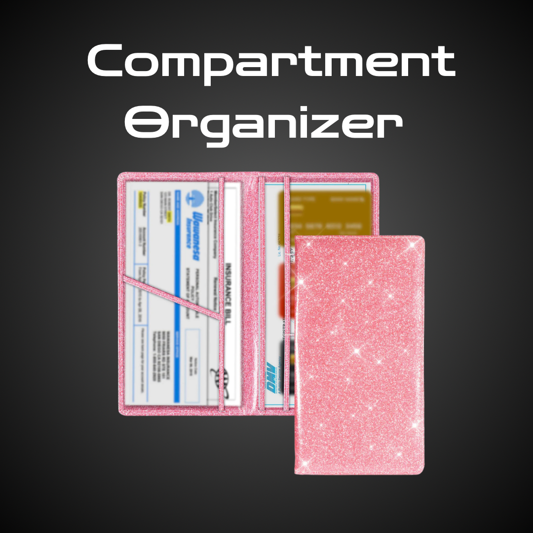 Add a touch of sparkle to your car essentials with our Compartment Organizer. Designed to keep your important documents neatly stored and easy to access, this organizer combines functionality with a fun, shimmering twist. The stylish glitter finish adds a pop of personality to your glove compartment or console, while the sturdy construction ensures durability.